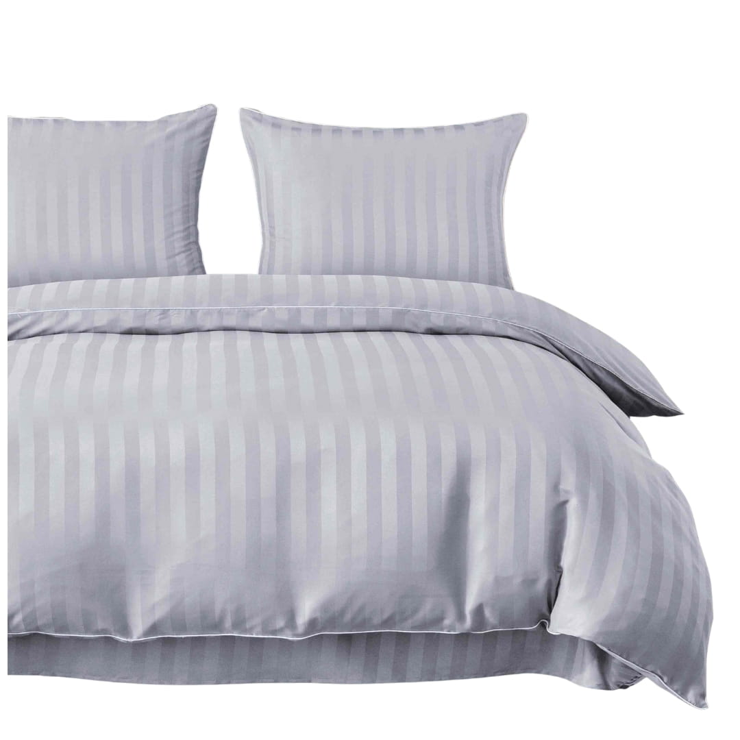 Pościel Z Lamówką 140x200 1x70x80 Silver Adamaszkowa Pasy