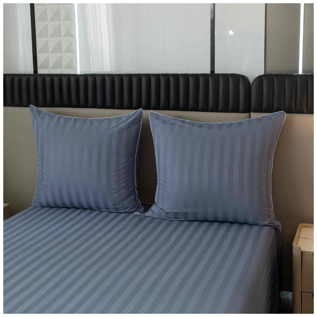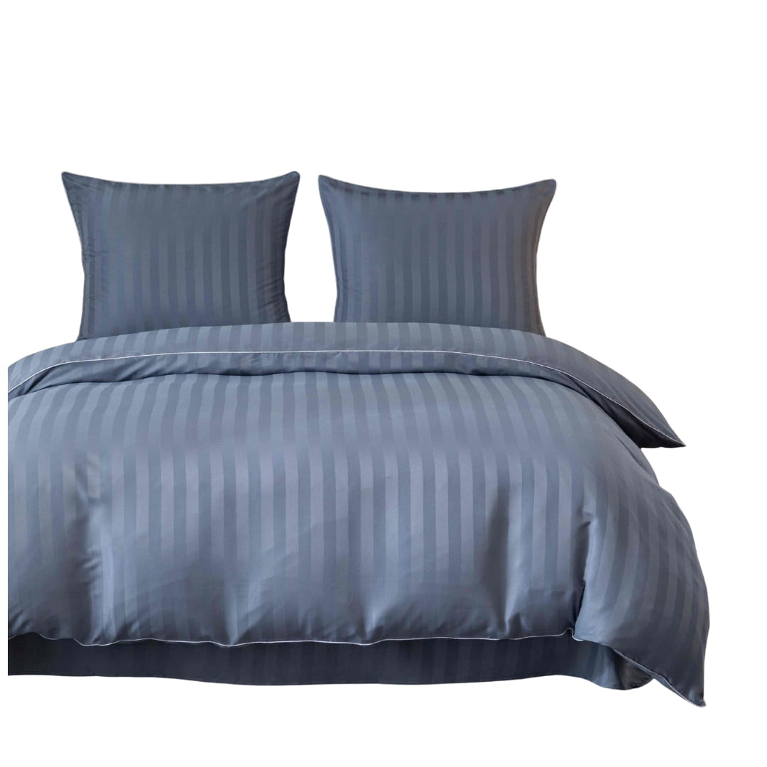Pościel Z Lamówką 140x200 1x70x80 Silver Blue Adamaszkowa Pasy