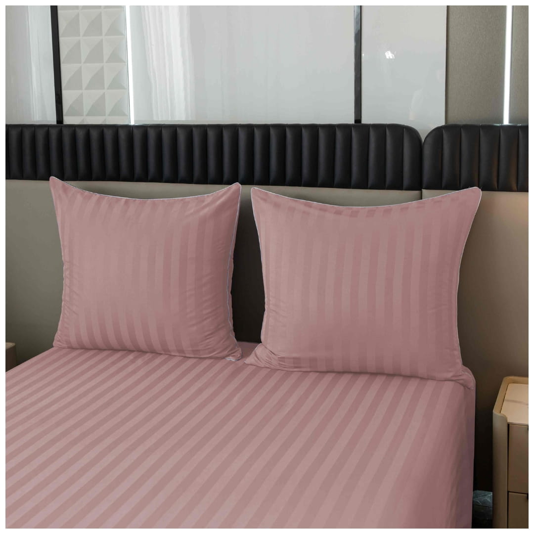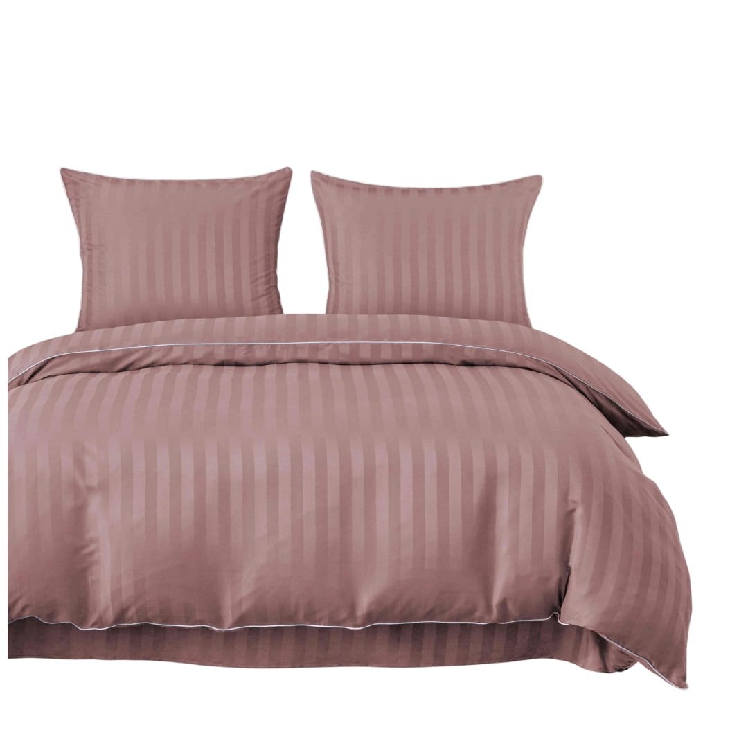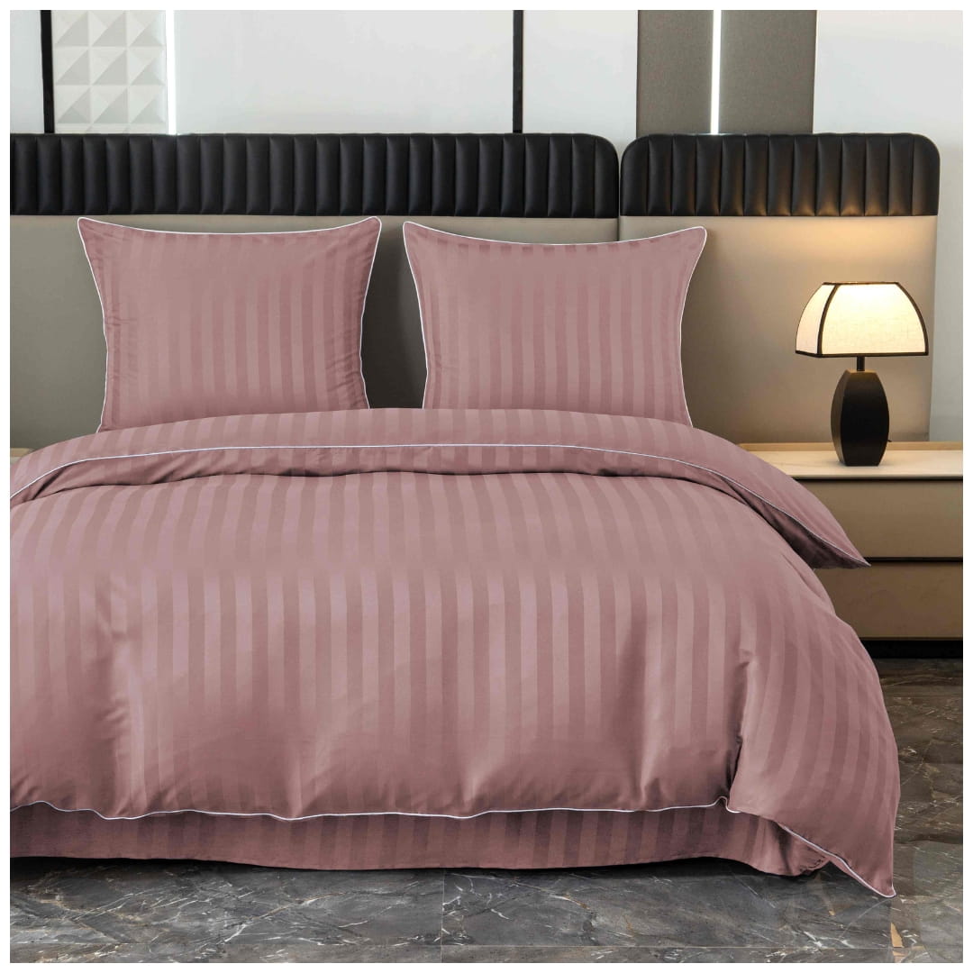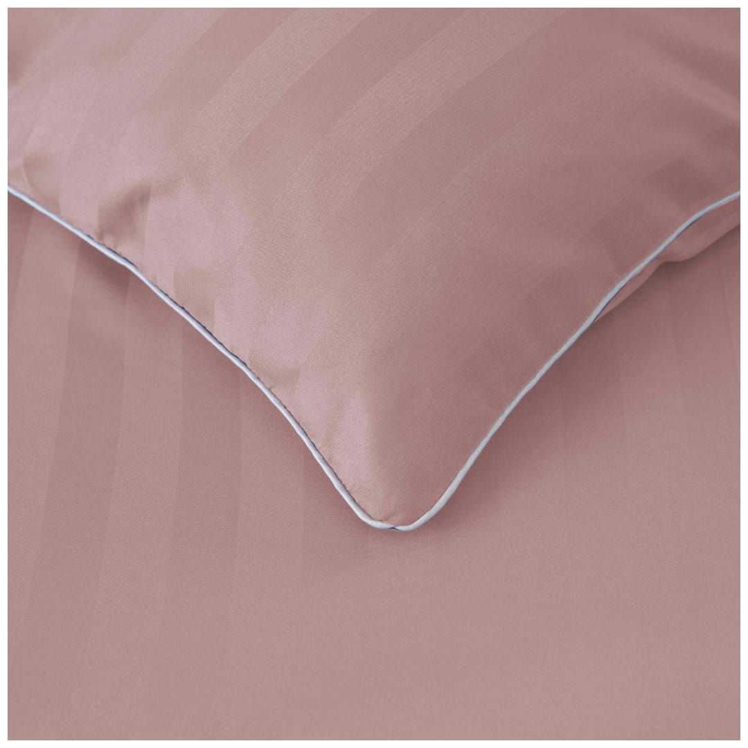 Pościel Z Lamówką 220x200 2x70x80 Pudrowy Róż Adamaszkowa Pasy