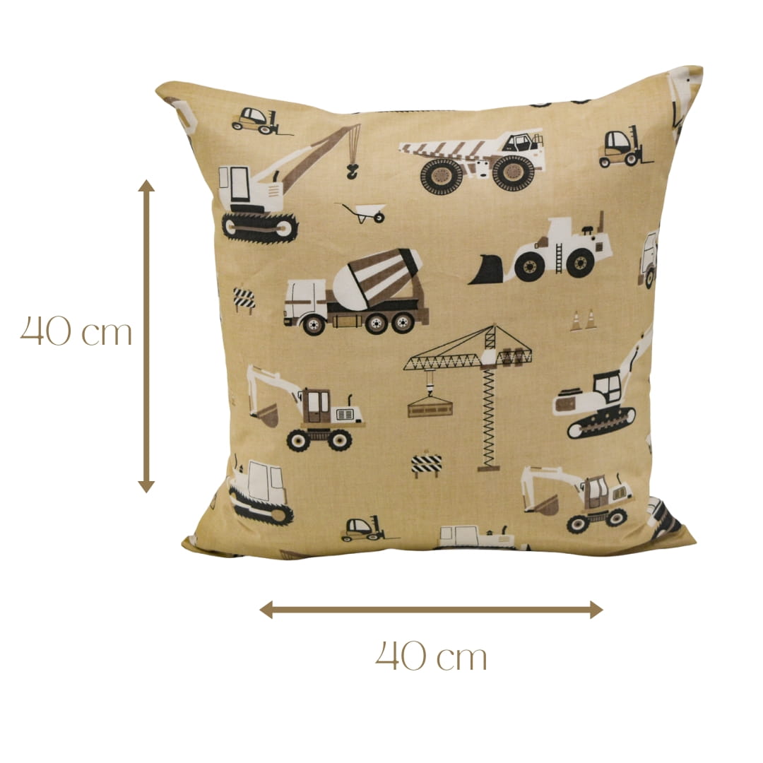 Poszewka Dziecięca 40x40 Bawełniana JAŚ Koparki Beżowe