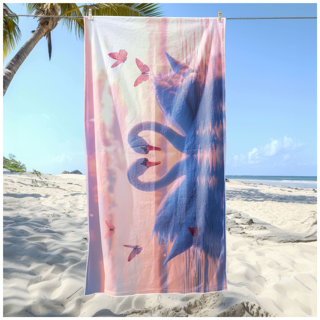 Ręcznik Plażowy Kąpielowy XL 70x140 Łabędzie Szybkoschnący R104