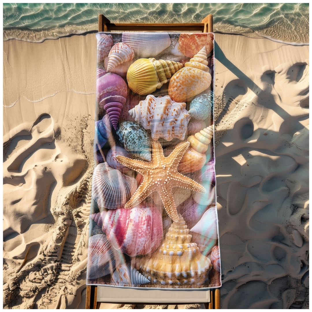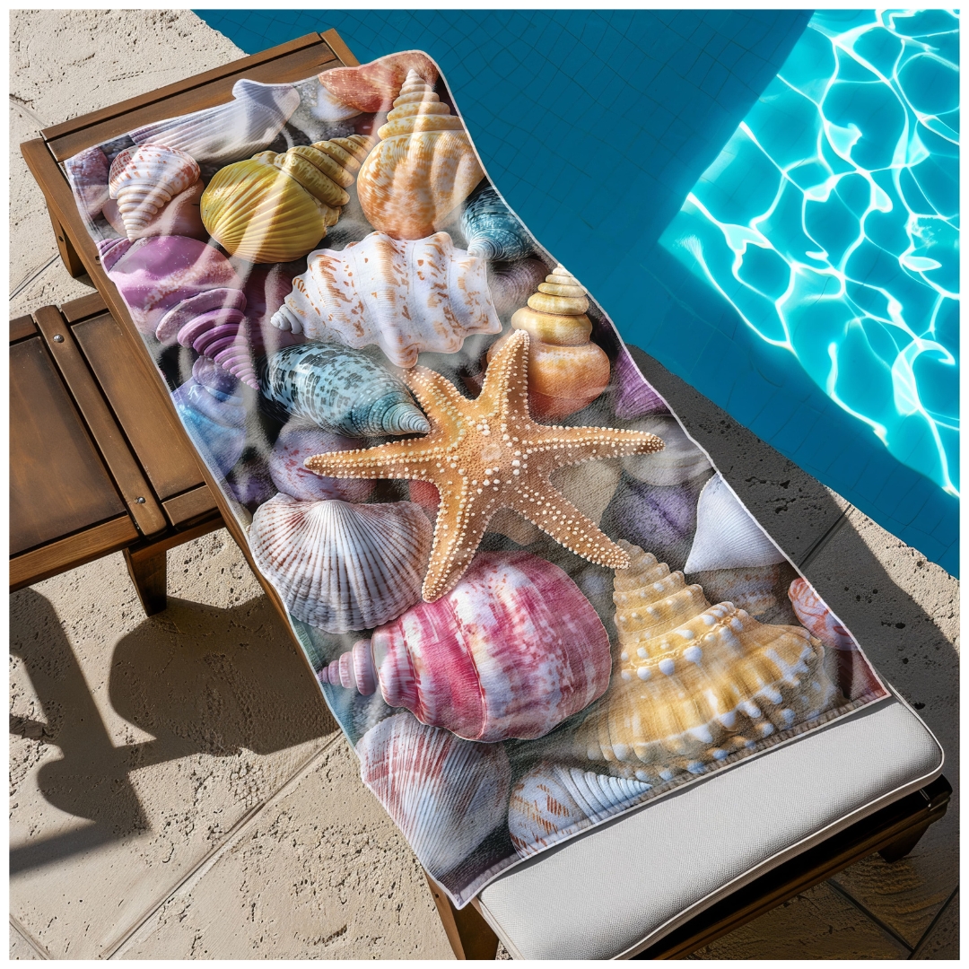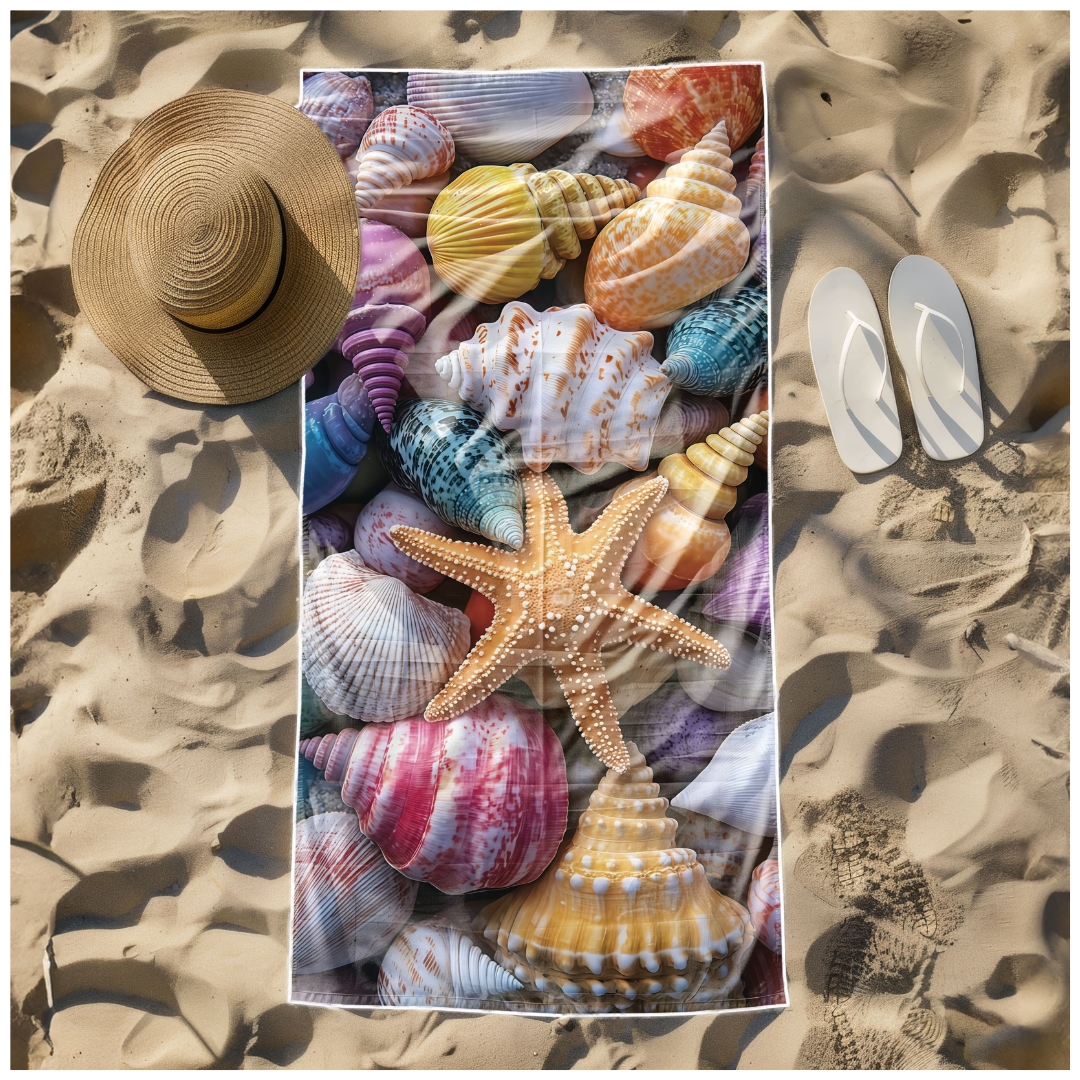 Ręcznik Plażowy Kąpielowy XL 70x140 Muszelki Szybkoschnący R114