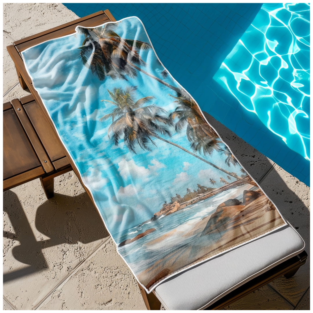 Ręcznik Plażowy Kąpielowy XL 70x140 Palmy Szybkoschnący R121