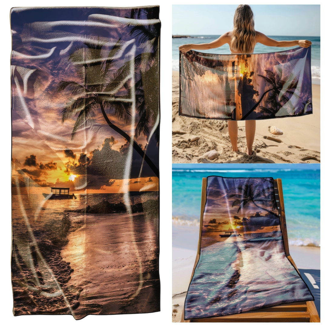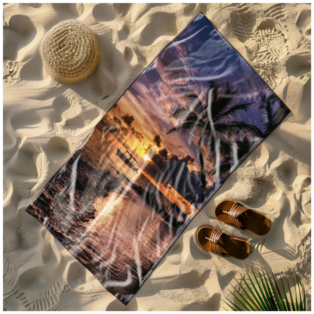 Ręcznik Plażowy Kąpielowy XL 70x140 Zachód Słońca Szybkoschnący R111