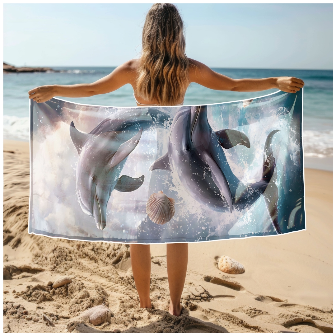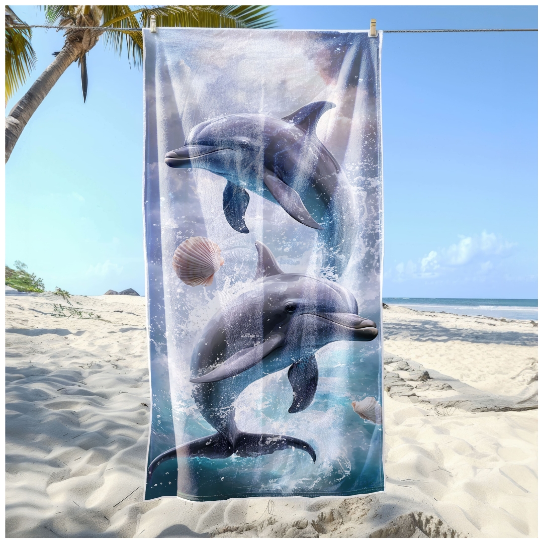 Ręcznik Plażowy Kąpielowy XXL 100x180 Delfiny Szybkoschnący R119