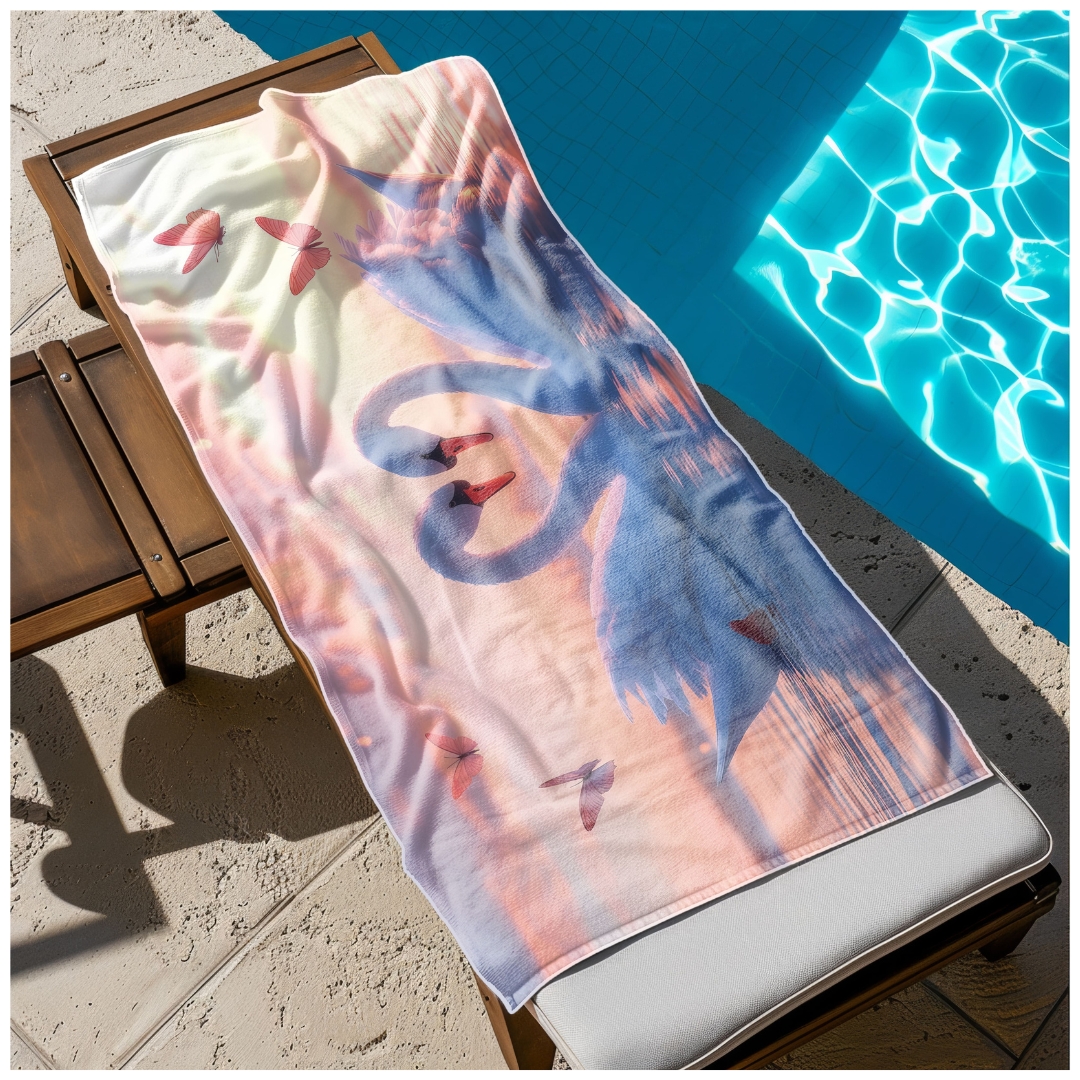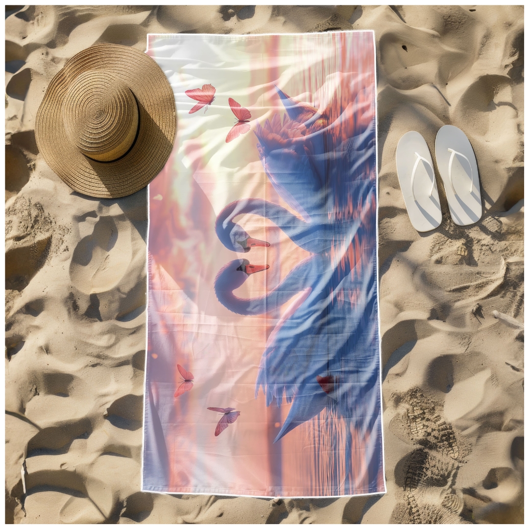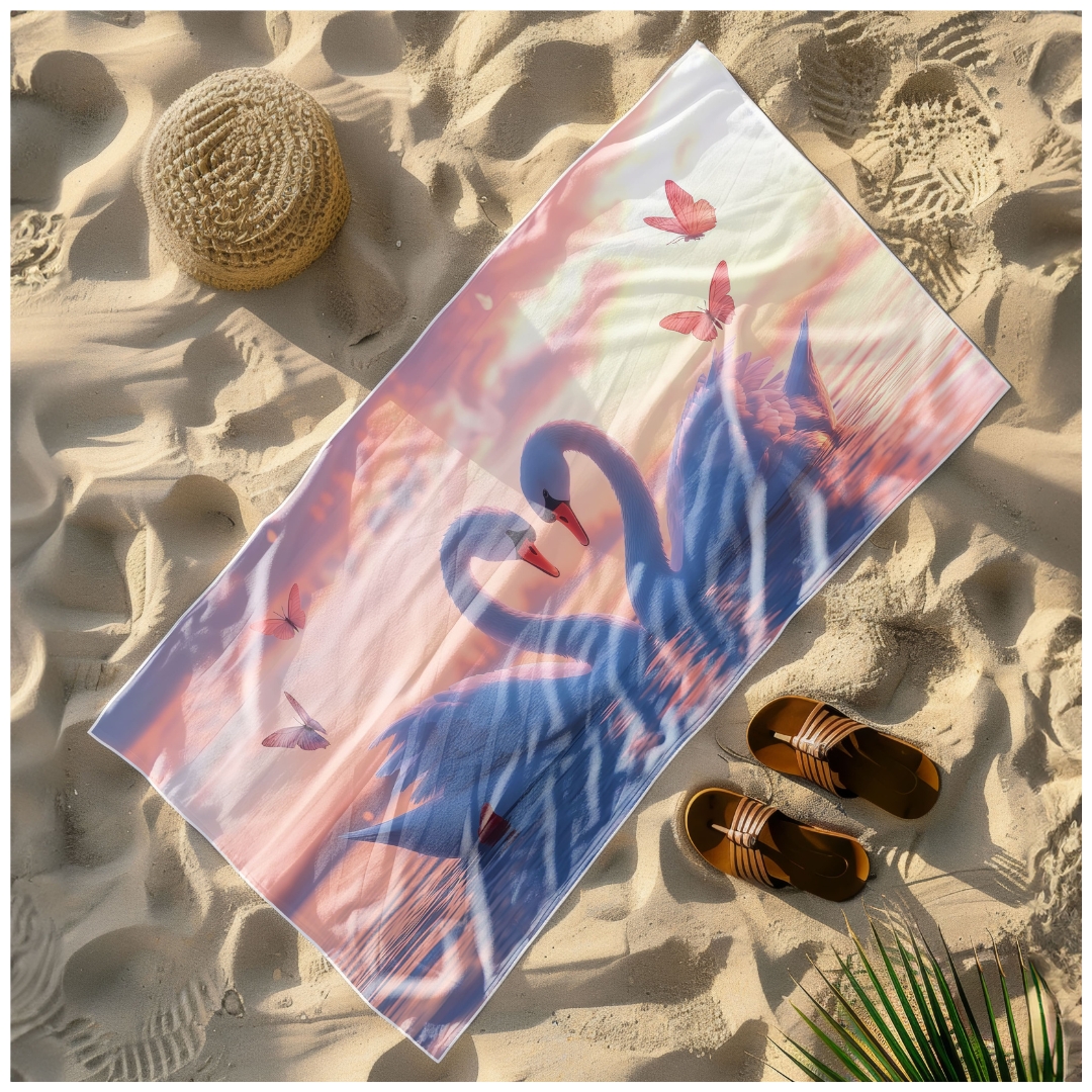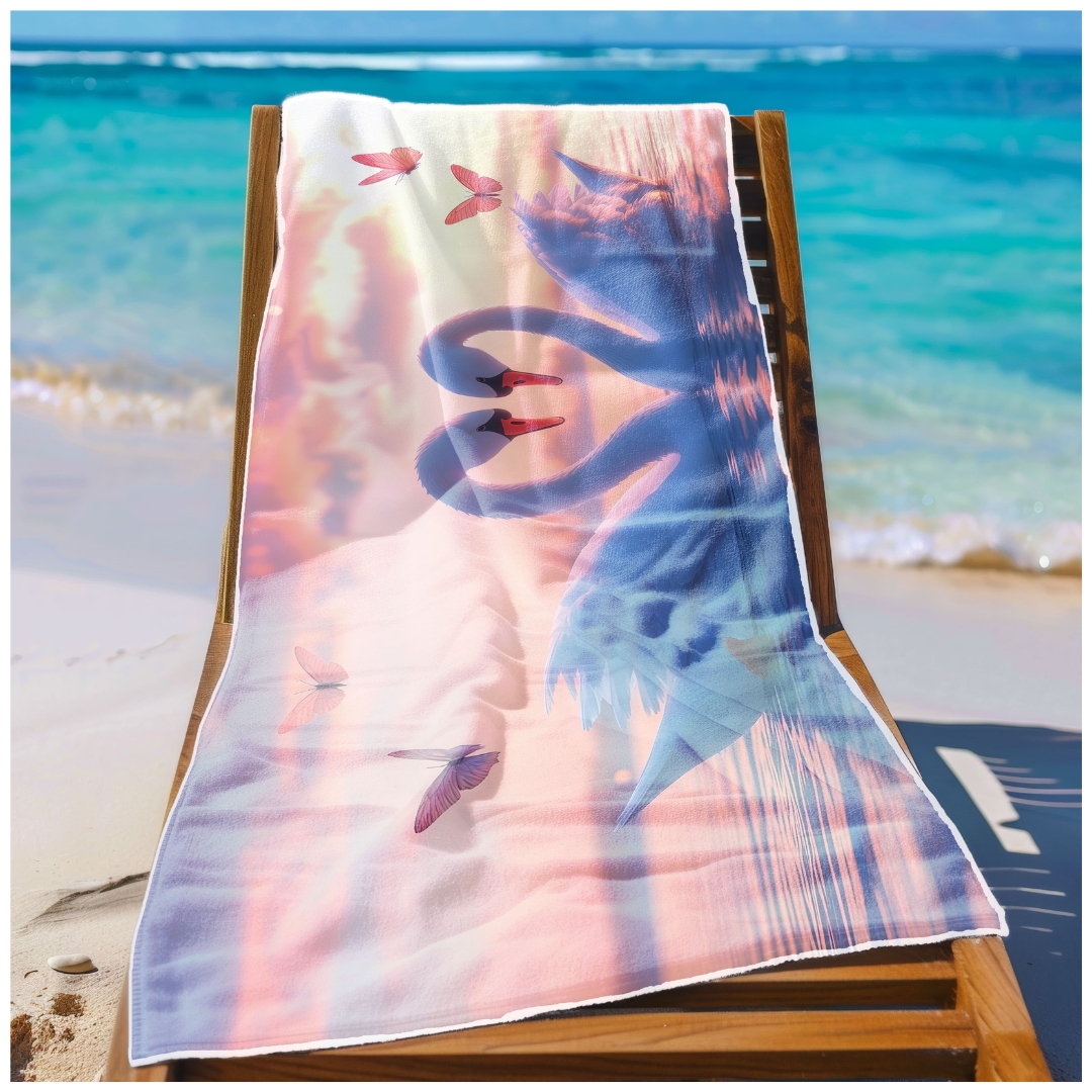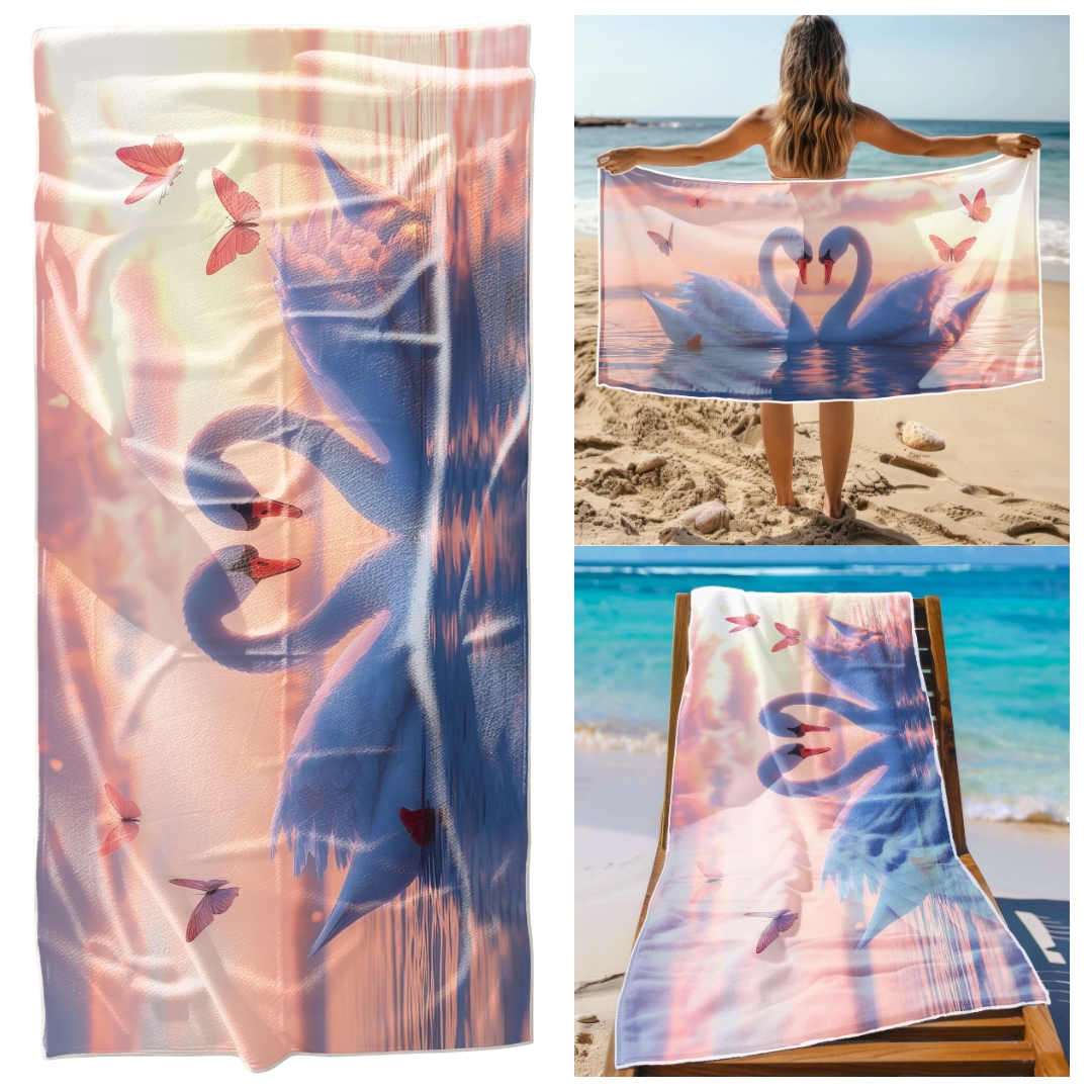 Ręcznik Plażowy Kąpielowy XXL 100x180 Łabędzie Szybkoschnący R104