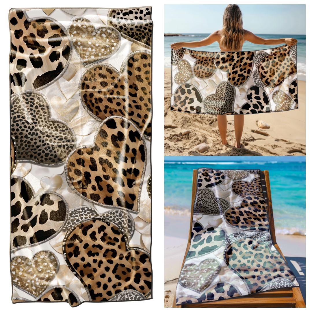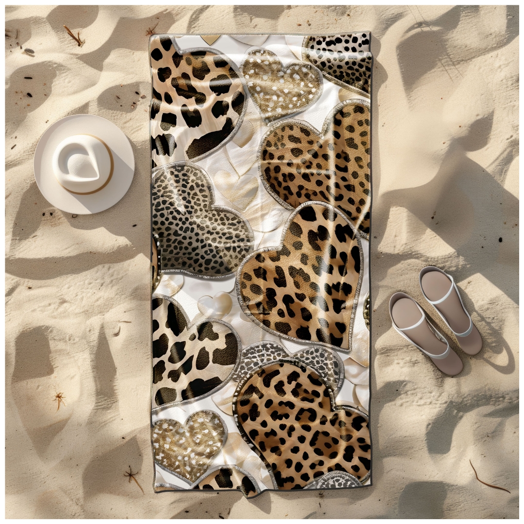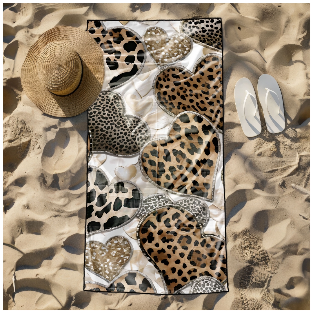 Ręcznik Plażowy Kąpielowy XXL 100x180 Serca Panterki Szybkoschnący R128