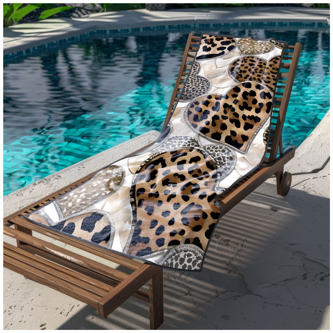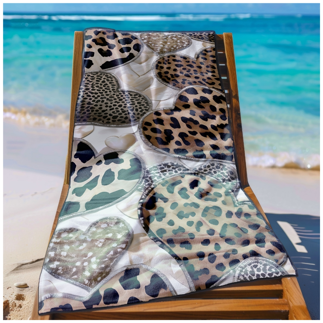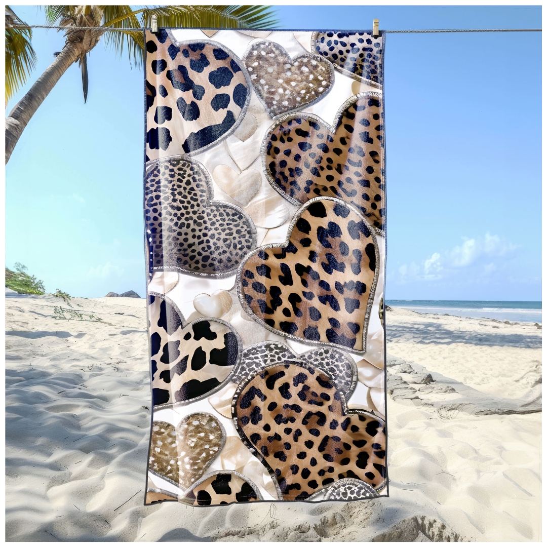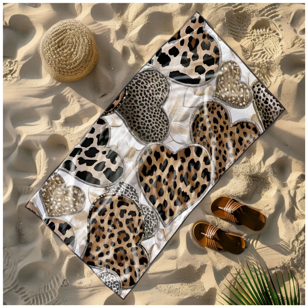Ręcznik Plażowy Kąpielowy XXL 100x180 Serca Panterki Szybkoschnący R128